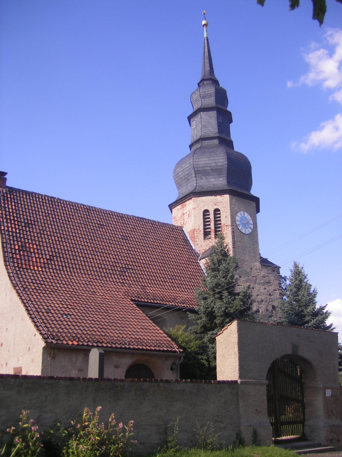 Die Saalkirche wurde 1766 unter Verwendung verschiedener Teile des Vorgängerbaus errichtet.