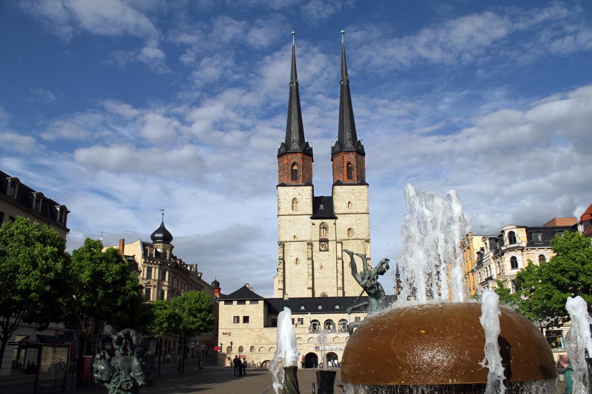 Die Marktkirche St. Marien "Unser Lieben Frauen", ist die jüngste der mittelalterlichen Kirchen der Stadt Halle (Saale). Sie zählt jedoch zu den bedeutendsten Bauten der Spätgotik in Mitteldeutschland. Ihre vier Türme bilden zusammen mit dem Roten Turm das Wahrzeichen der Saalestadt. 1554 wurde der Bau vollendet.