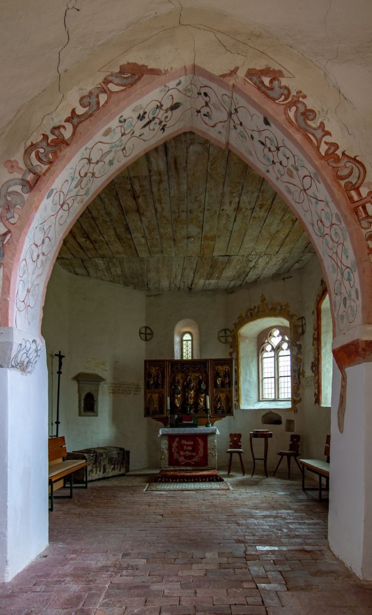 Ein besonderer Blickpunkt ist der Flügelaltar, der in die Zeit zwischen 1505 und 1510 datiert wird. Er zeigt in der Mitte Maria mit dem Kind, links Petrus mit dem Schlüssel und der Tiara (Papstkrone) und rechts Paulus mit einem Buch. Von den ehemals acht Heiligen rechts und links in den Seitenflügeln sind leider nur noch fünf erhalten, zwei davon mit relativer Sicherheit namentlich zuzuordnen: Barbara und Dorothea.