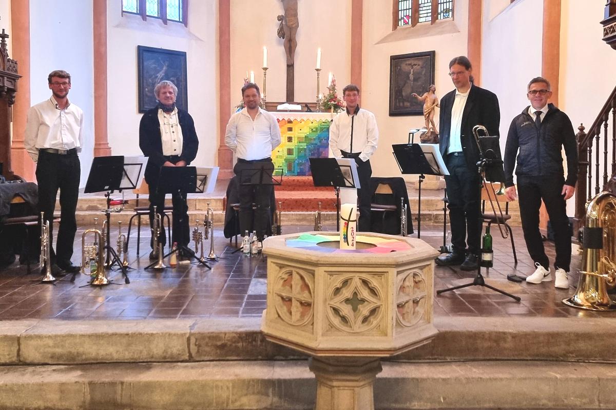 Es wird auf der Empore musiziert, die Bankreihen sind nicht nummeriert